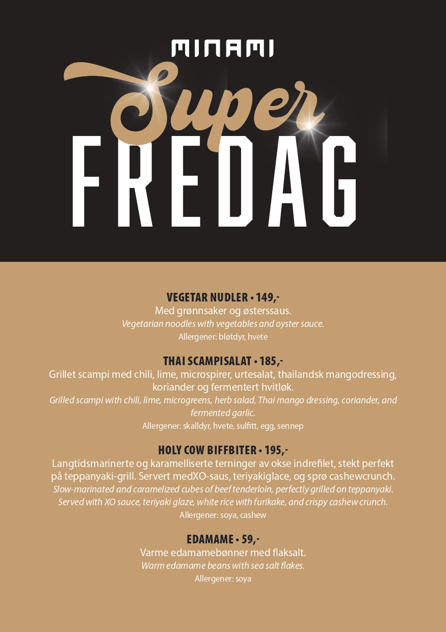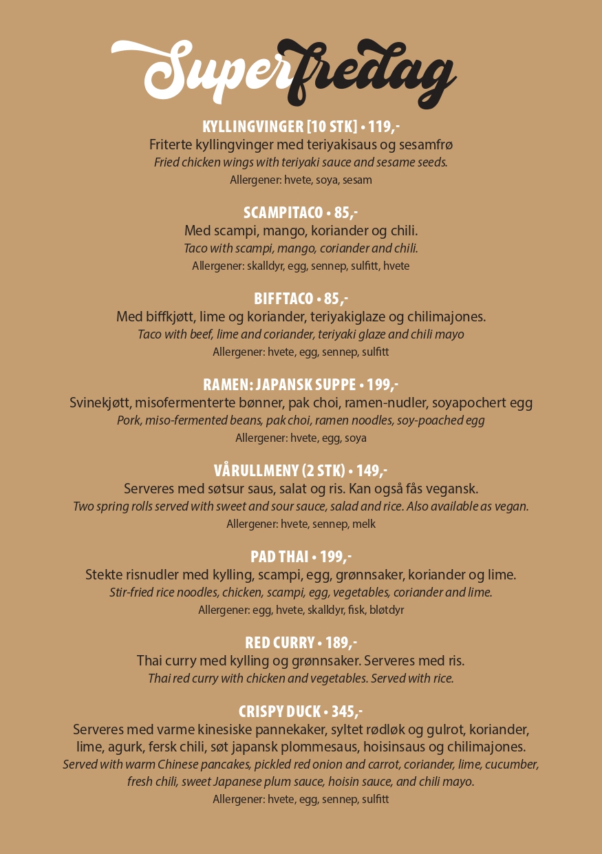 Superfredag Menyen serveres mellom kl. 20:00-22:00